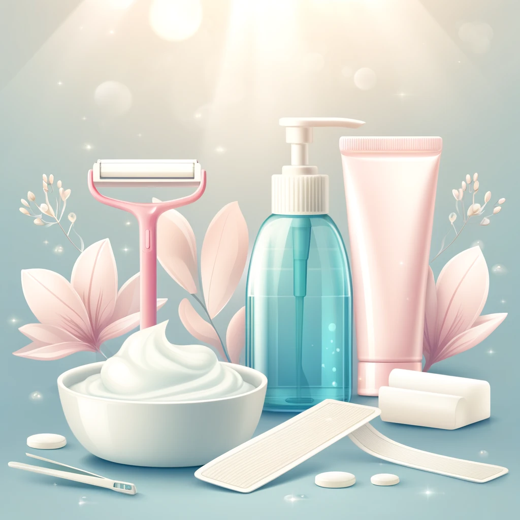 - 道具: 除毛クリーム、スパチュラ、保湿クリーム。